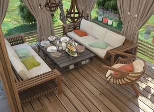 По желанию гостей веранда может превратиться в концертный зал на открытом воздухе. Приятная музыка станет дополнением к праздничному торжеству.