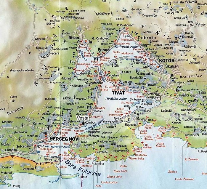 На карте Черногории с городами Подгорица, Котор, Цетинье турист может провести отличные каникулы.