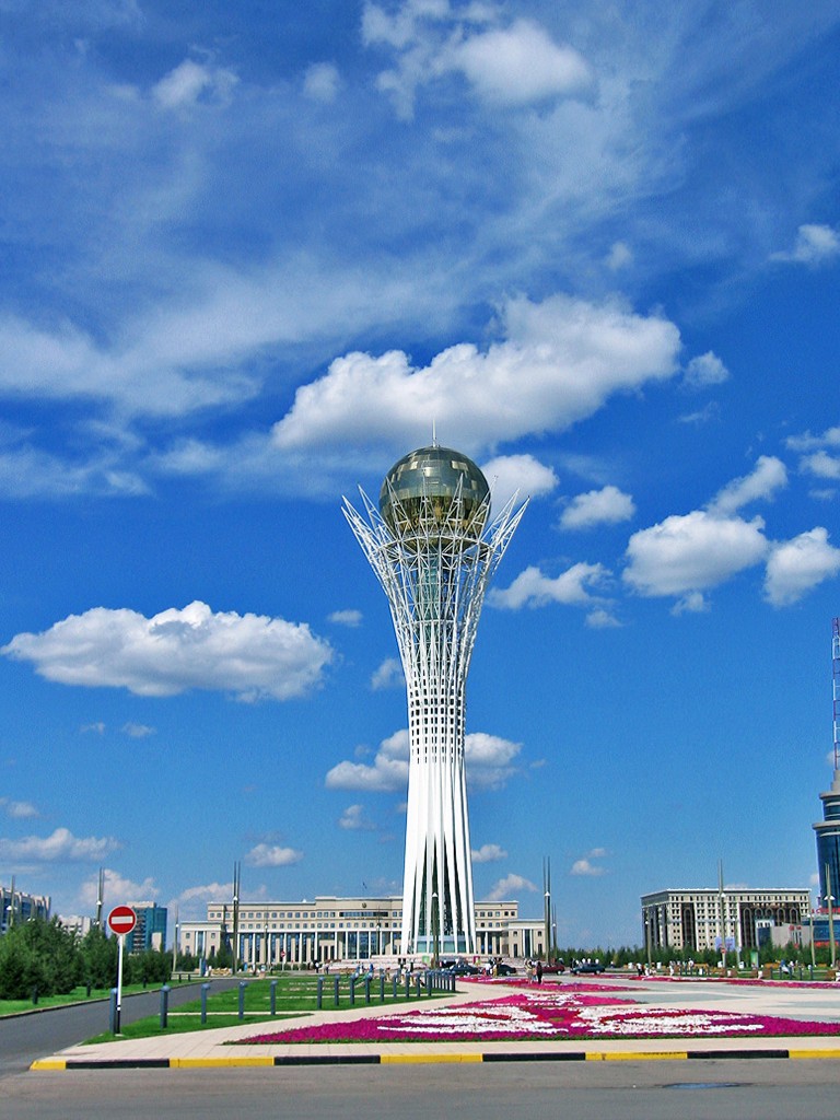 Новая столица Казахстана не испытывает недостатка в экзотических зданиях, некоторые из которых лучше всего описываются дерзкими местными прозвищами: банан (ярко-желтая офисная башня), семь бочек (группа многоквартирных башен), зажигалка ( Министерство транспорта и коммуникаций). Но одно такое сооружение, национальный памятник под названием Байтерек, не поддается прозвищу по той простой причине, что не похоже ни на что другое. Во всяком случае, не на этой планете.