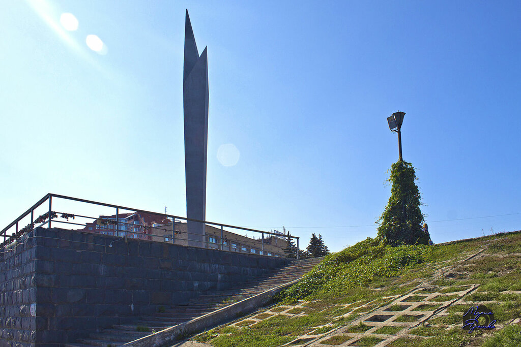 7. «Росток» — монумент Славы на набережной р. Суры, символизирующий стремительное развитие города и страны в целом. Представляет собой 25 метровый обелиск и стелу из карельского гранита.