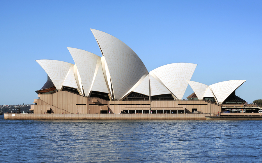 Построен за 14 лет на берегах бухты Порт-Джэксон. Его летящий силуэт как будто парит над водной гладью. Из-за необычных архитектурных форм, похожих на паруса, театр внесен в списки охраны ЮНЕСКО. Театральный комплекс состоит из нескольких залов, самый большой из них вмещает 2 500 зрителей. Могут идти одновременно 5 представлений. В помещениях театра размещаются также сувенирные магазины, бары и рестораны.