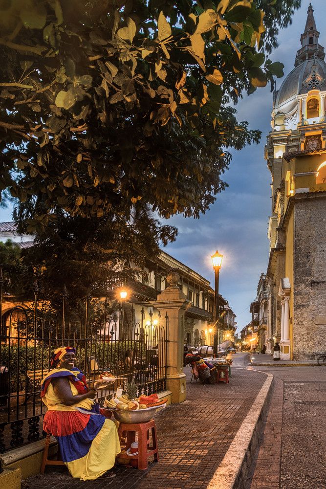 В завершении нашего кругосветного путешествия мы очутились на побережье Карибского моря, в городе Картахена (Картахена-де-Индиас, исп. Cartagena de Indias). Это очень известный курорт в Колумбии, куда приезжают в отпуск американцы и европейцы, и даже не ради достопримечательностей в испанском колониальном стиле, а чтобы насладиться прелестями солнечных ванн и традициями колониального городка. Здесь так жарко, что, кажется, будто солнце щипает кожу. Но именно за этим сюда и приезжают: за красками, за светом и радостью.