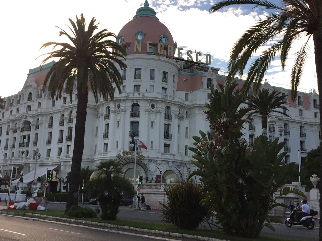 Роскошное здание отеля в стиле неоклассицизма — украшение Английской набережной. Построенная в 1912 году по заказу румынского трактирщика Анри Негреско гостиница некогда была одной из наиболее комфортабельных в мире.
