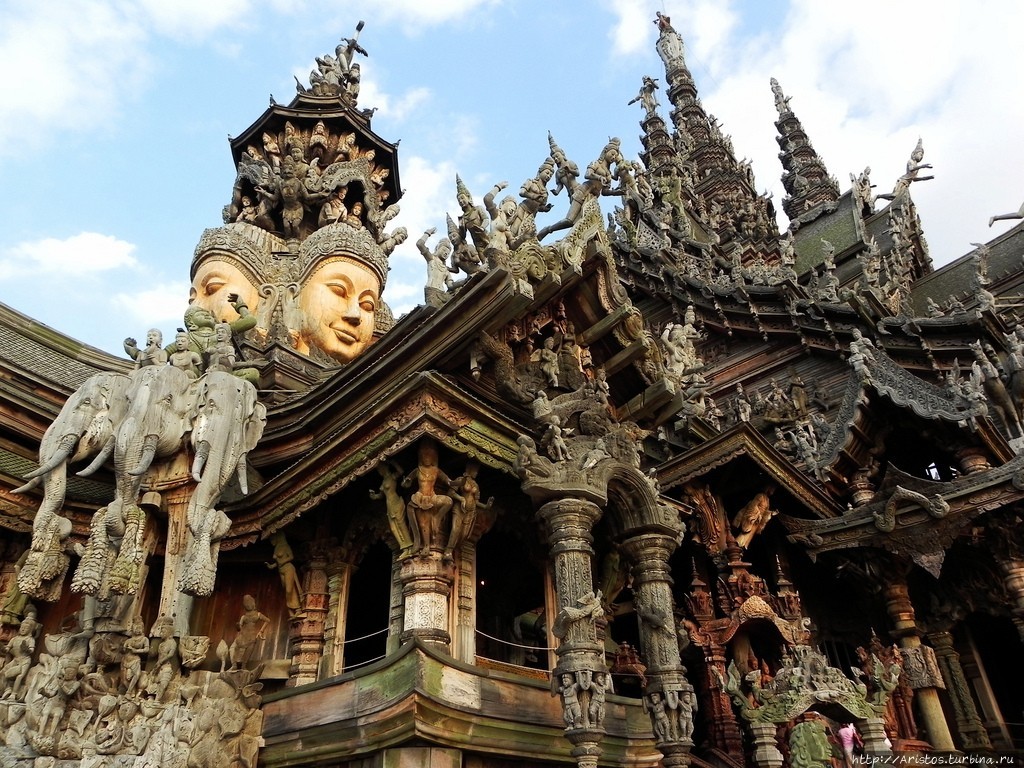 Однажды тайский миллионер-филантроп Лек Вирияпант решил внести свою посильную лепту в мир между народами и возвести на северной окраине Паттайи Храм Истины (The Sanctuary of the Thuth, он также известен как Храм всех религий) – дескать, ребята, давайте жить дружно, все мы суть человеки и прочее. Начинание очень похвальное и, надо отдать создателю сооружения должное, основательно продуманное и неплохо воплощенное: вблизи храм выглядит ничуть не хуже, чем издалека.