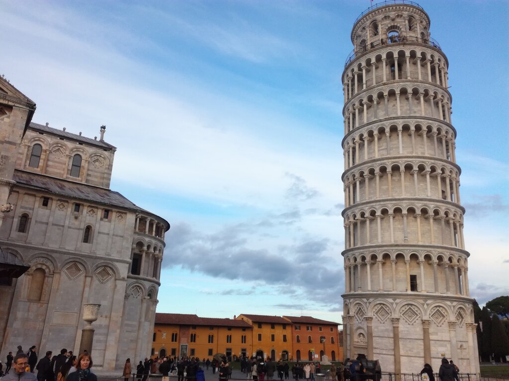 Одна из знаковых достопримечательностей Италии — падающая башня, действительно оправдывает свое название, откинувшись на 5,5 градусов от вертикальной оси. 58-метровая башня, официально являющаяся колокольней Дуомо, строилась почти два столетия и была завершена лишь в 1372 году.