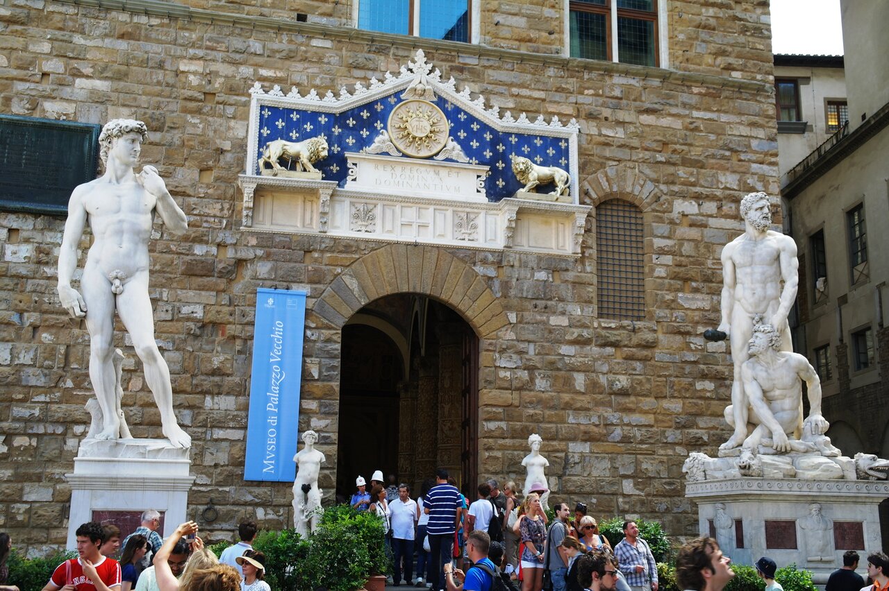 Площадь Синьории (Piazza della Signoria), служившая символом власти во времена Флорентийского государства, производит внушительное впечатление за счет сурового замка-крепости. Украшенная статуями эпохи Возрождения: знаменитым «Давидом» Микеланджело (Michelangelo) и «Юдифью» Донателло, она заслуживает внимания.