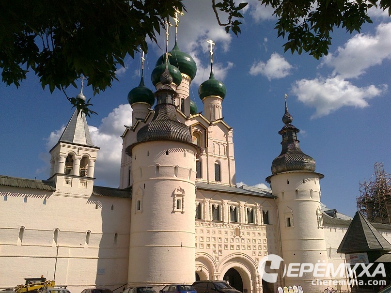 Согласно инвентарной книге 1763 года, старая крепостная ограда монастыря была сделана из бревен и с XVII века постепенно заменялась каменными стенами и башнями.С одной из четырех восьмиугольных башен посетители монастыря могут наблюдать захватывающие виды на архитектурный ансамбль Дмитриевского собора (Дмитриевский собор), Зачатьевскую церковь (церковь Непорочного зачатия святой Анны) с церковью святителя Якова Ростовского. , крепостные стены и, конечно же, красивые пейзажи озера Неро.