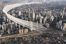 Petronas Towers, также известные как башни близнецы Петронас, являются близнецами небоскребами в Куала-Лумпуре. Они были самыми высокими зданиями в мире с 1998 по 2004 год и остаются самыми высокими башнями близнецами в мире. Башни центральная достопримечательность Куала-Лумпура. Высота их составляет 491 метр, на башнях расположен самый высокий в мире мост.