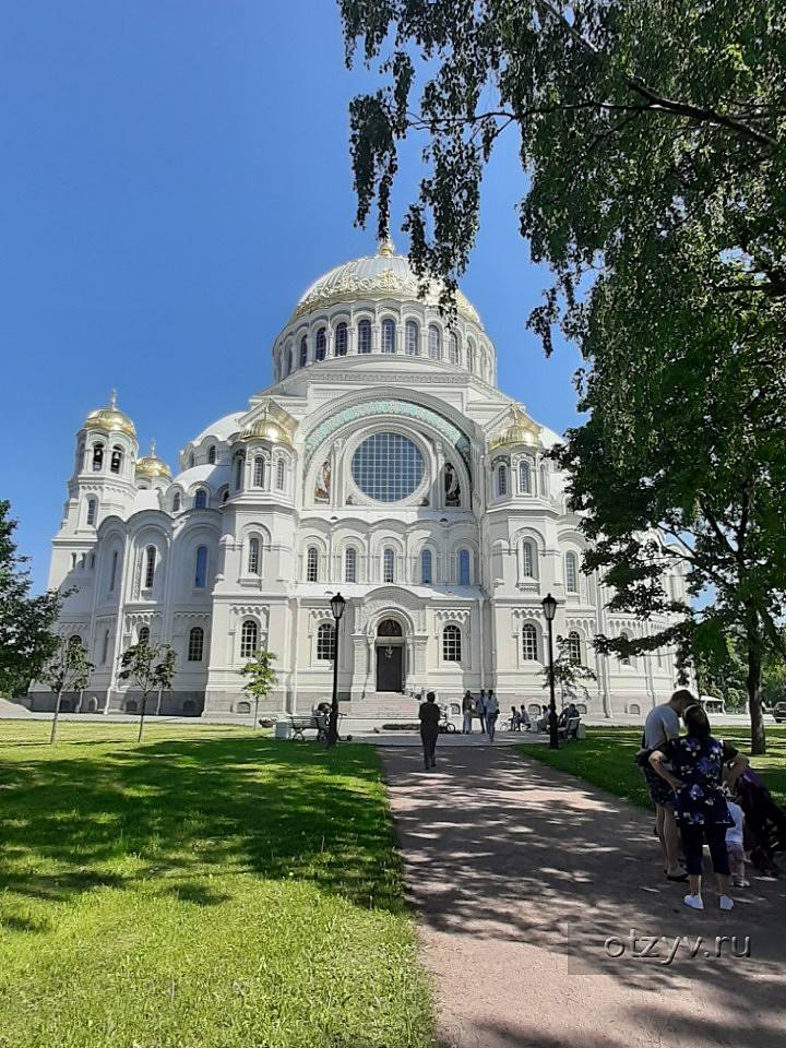 Морской собор — символ Кронштадта. Его сияющий позолоченный купол можно увидеть даже с материка! Белый собор высотой 70 метров великолепно смотрится на фоне голубого неба.Однако размеры — не самая яркая особенность Морского собора.