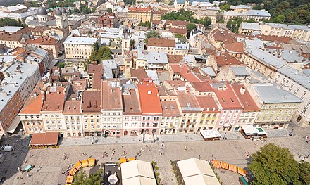 В середине виднеется Львовская ратуша- основная достопримечательность Рыночной площади.