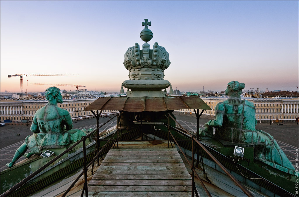 Исторический центр Санкт-Петербурга внесен в список Всемирного наследия ЮНЕСКО. Это произошло не только из-за уникального архитектурного ансамбля, но и из-за знаменитого «горизонта».Он был образован указом, запрещавшим строительство построек выше карниза Зимнего дворца. Поэтому все здания имеют одинаковую высоту в центре. Вы можете увидеть это архитектурное явление, если заберетесь на крышу. Есть много гидов, которые помогут вам найти лучшее место. Вы можете присоединиться к экскурсии по крыше и насладиться панорамным видом на этот замечательный русский город.