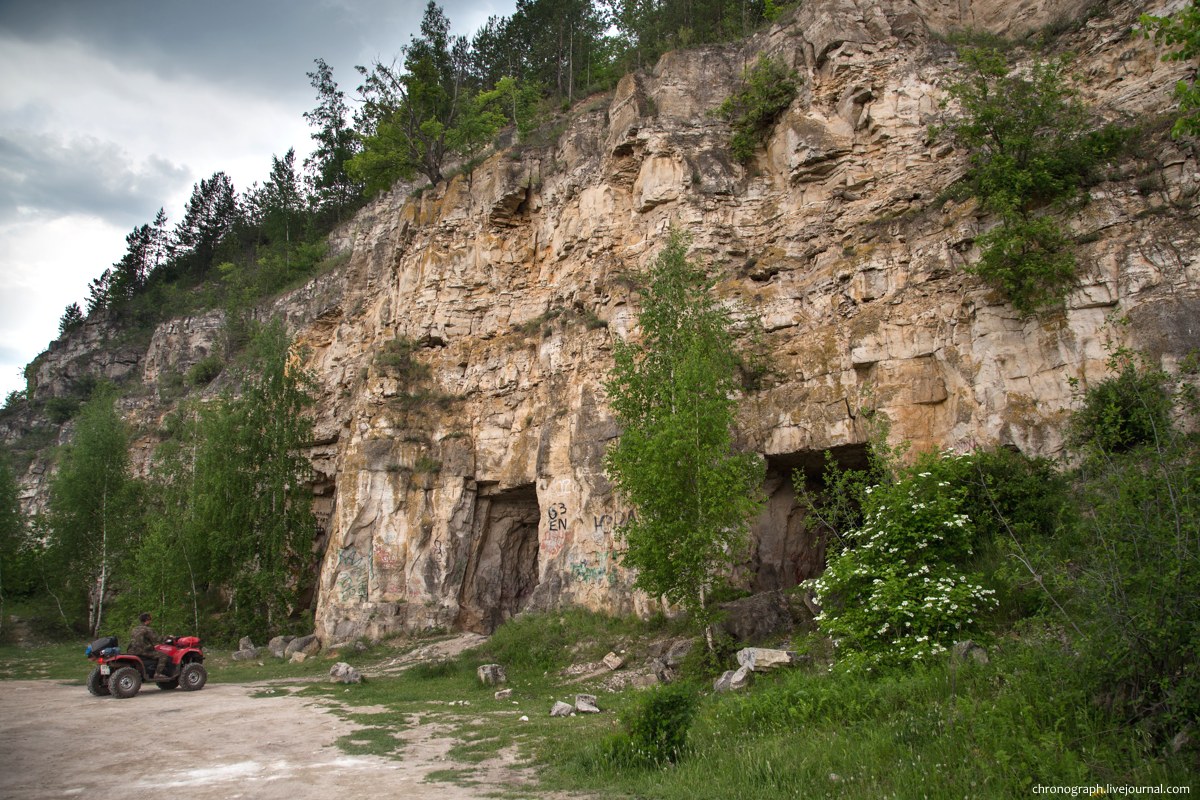 Благодаря геологическим особенностям на южном склоне обосновался карьер по добыче строительных материалов.