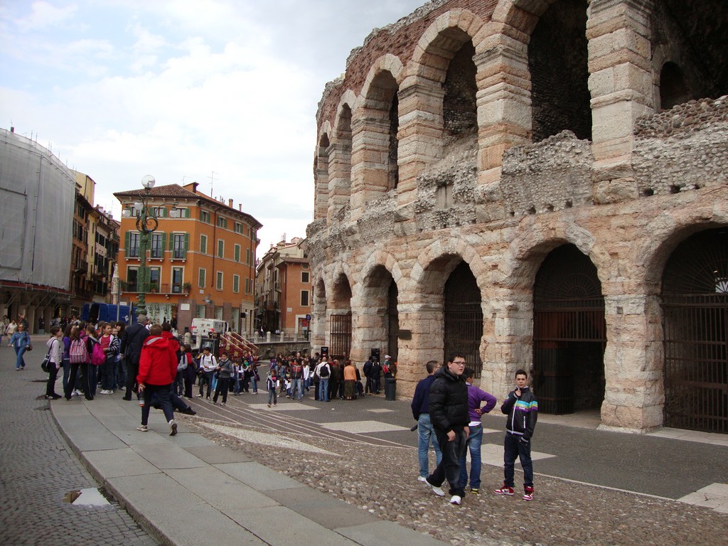 Более двух тысяч лет назад римляне построили Арена-ди-Верона — огромный амфитеатр из розового мрамора способный вместить 15 тысяч зрителей. Это место где проводят концерты, музыкальные шоу, организуются ярмарки. Когда никаких мероприятий нет, то его можно посетить, как экскурсию, купив билет за 4 евро. Арена-ди-Верона совсем не уступает римскому Колизею, отчасти, поэтому Верону иногда называют «маленький Рим». Если Колизей разбирали по камням для строительства зданий, то веронский амфитеатр все две тысячи лет служил строго по своему назначению.
