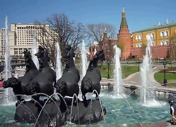 Искусственный водоем с фонтанами и балюстрада отделяют Манежную площадь от Александровского сада. Этот благоустроенный парк, вход в который расположен рядом с Историческим музеем, появился в 1812 году. До XVIII столетия здесь протекала река Неглинка, позже заключенная в гранитный канал и передавшая эстафету трехуровневому саду. Зеленый оазис в самом сердце столицы изначально назывался Кремлевским.
