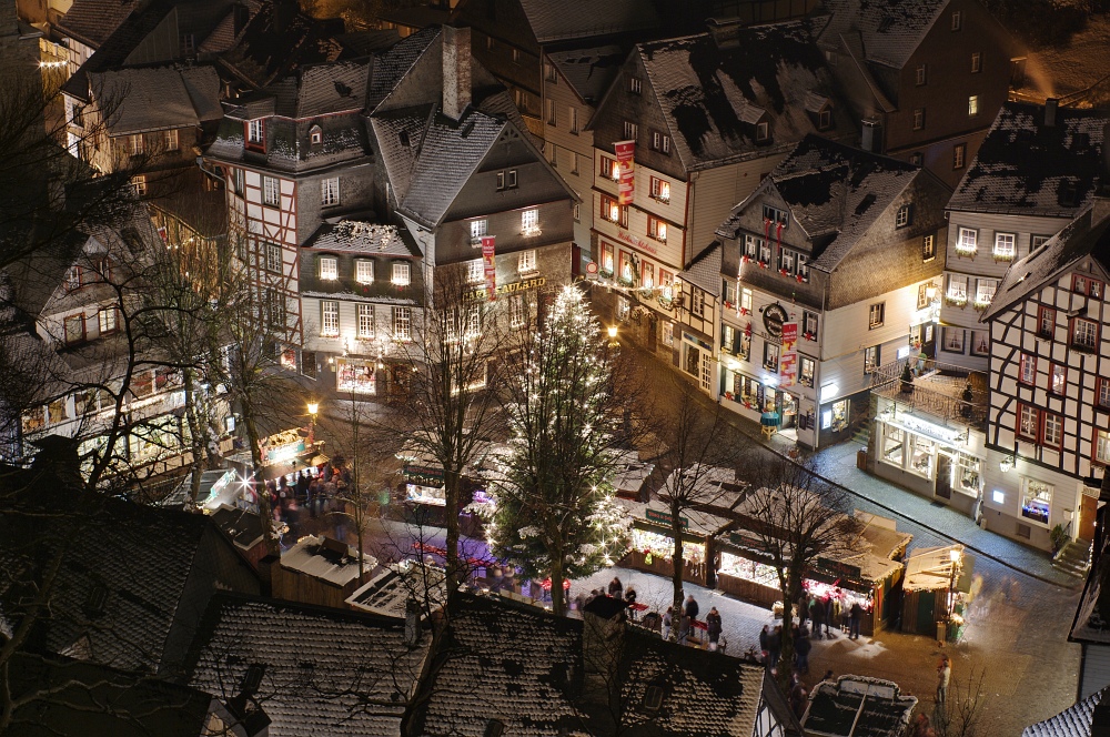 Извилистые улочки средневекового города заполнены колоритными фахверковыми домами, которые особенно волшебно смотрятся со снегом и рождественскими украшениями.
