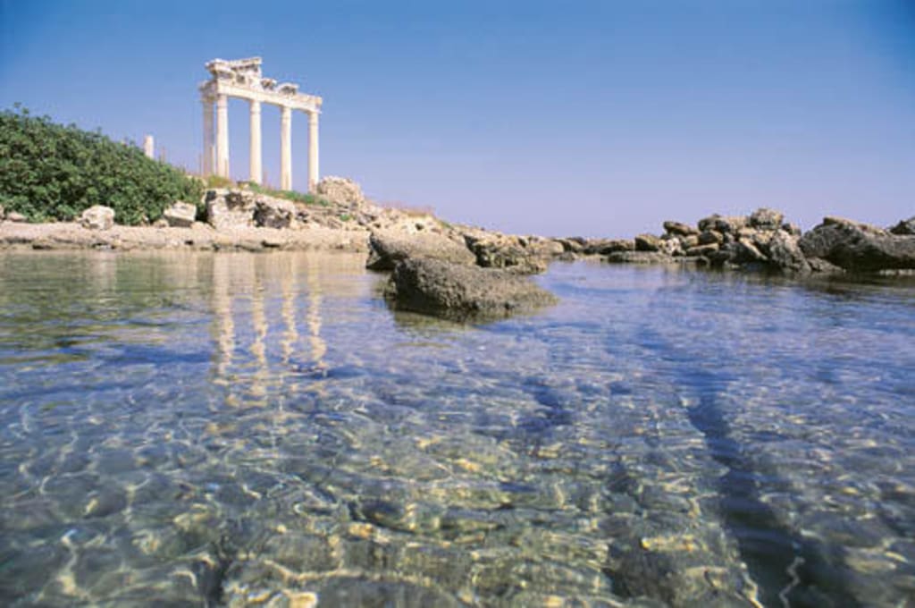 На берегу Средиземного моря в Сиде стоит древнейшая постройка, возведение которой датируется 2 веком до нашей эры. Это храм Аполлона — сына великого Зевса. Изначально здание строилось в форме прямоугольника, окруженного 34 колоннами из белого мрамора. Так оно и выглядело до 10 века нашей эры, пока не произошло крупное землетрясение. До наших дней удалось сохранить только 5 колонн, которые находятся по усиленной охранной государства.