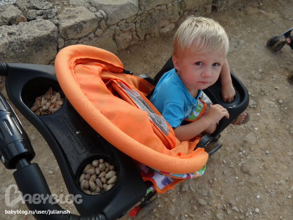 Первые несколько дней мы ездили в Пафос вечером, после тихого часа наших детей (где-то в 17.00), но столкнулись с проблемой, что все музеи, церкви, монастыри закрываются в 18.00 и мы никак не успевали что-то посмотреть. В итоге, мы выделили несколько жарких дней на прогулки по Пафосу утром. Усадили детей в коляски (еще раз оговорюсь, что не представляю, как мы все это посмотрели бы, если бы не купили коляску старшему, это нереально) и поехали.
