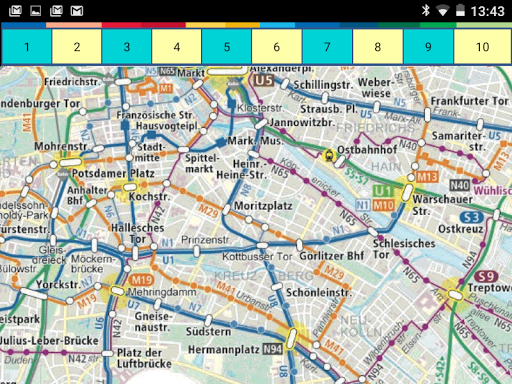 Круглосуточные маршруты начинаются с буквы M. Круглосуточные маршруты MetroTram: M1, M2, M4, M5, M6, M8, M10, M13 и M17. Используйте планировщик поездок BVG, чтобы проложить доступный маршрут с использованием трамвая и других систем общественного транспорта.