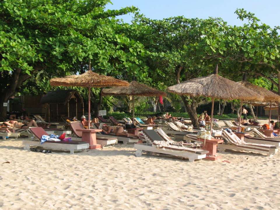Прокат шезлонгов есть, но в основном их предлагают на Квин Бич и Муая Бич. В центральной части Джимбарана — большой незастроенный участок, и здесь придется или тень от деревьев ловить, или что-то свое приносить.