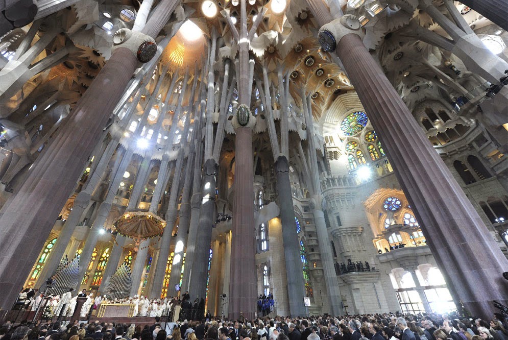 (освящен в 2010 г., но все еще находится в стадии строительства), Барселона, Испания (фото: SBA73, CC BY-SA 2.0)