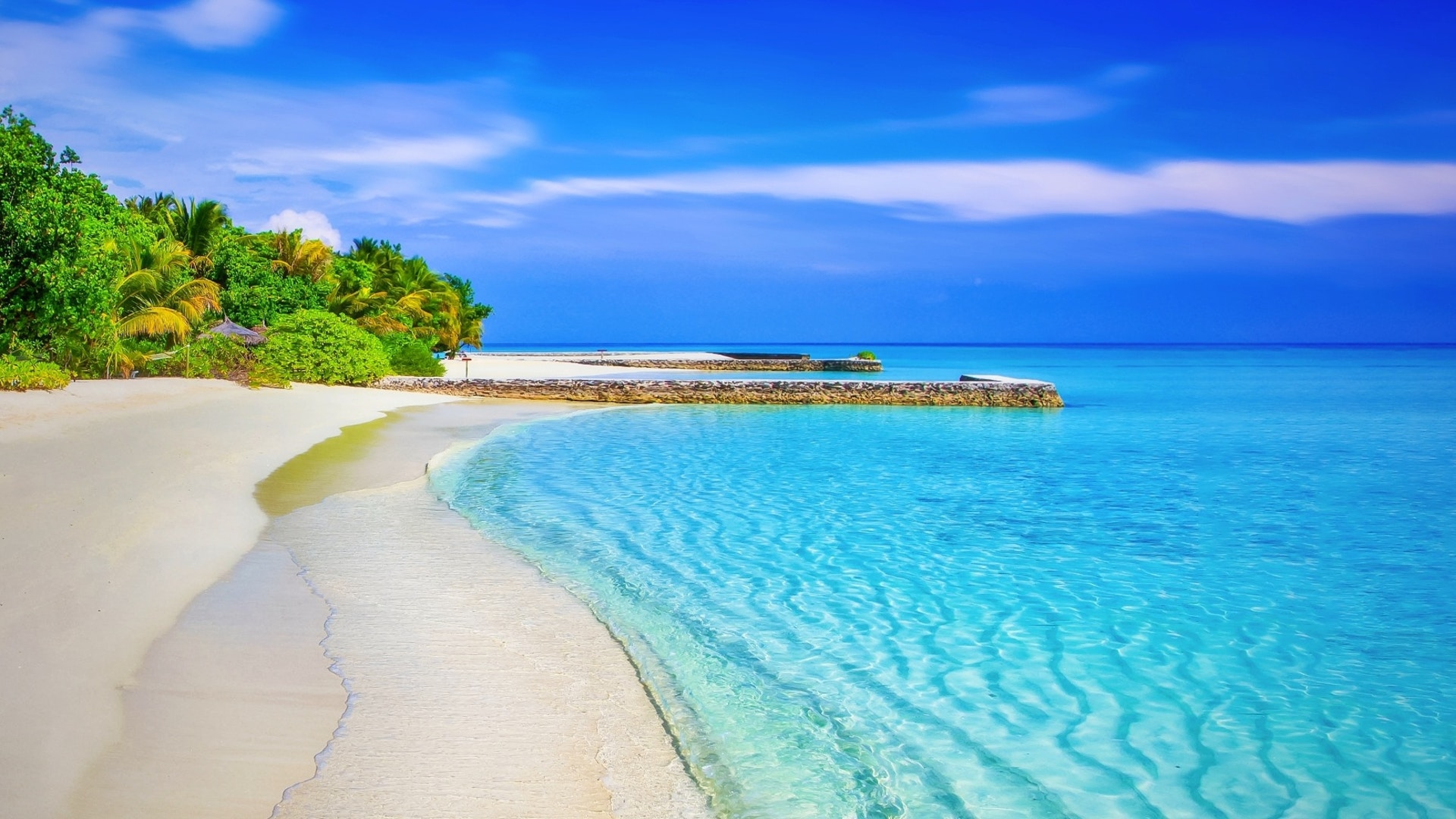 Белоснежный песок на Мальдивских островах (Индийский океан)