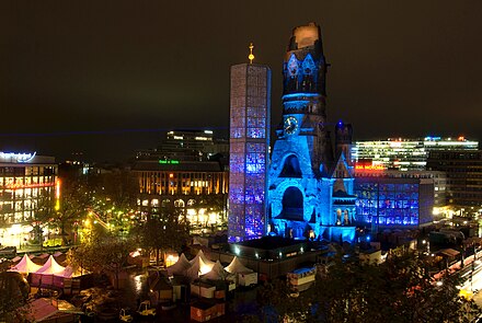 Церковь кайзера Вильгельма была построена в конце 1800-х годов. Он был сильно поврежден во время авианалета в 1943 году. В отличие от многих зданий, которые были перестроены в Берлине, остатки этой церкви остались неизменными, как напоминание о разрушениях Второй мировой войны.