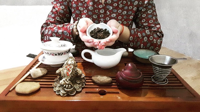В китайских традициях чаепития приготовлению напитка уделяется особое внимание. Чтобы полноценно определить аромат и вкус чая, требуется достаточное количество времени. В чайной церемонии применяются только классические сорта улуна. Это чай высокого качества, в производстве которого используются только молодые листья и почки с кустов, произрастающих в горной местности, в обработке которых применяется ручной труд.