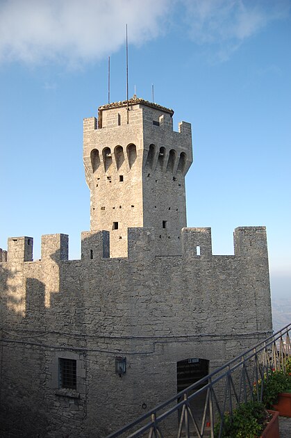 Башня Гуаита или Рокка, в переводе с итальянского означает Первая башня (Guaita, La Rocca, Prima Torre) — самая известная и старейшая башня, доминирующая над двумя другими. Окружена самой старой из трех стен, некогда окружавших город Сан-Марино и все еще видны сегодня.