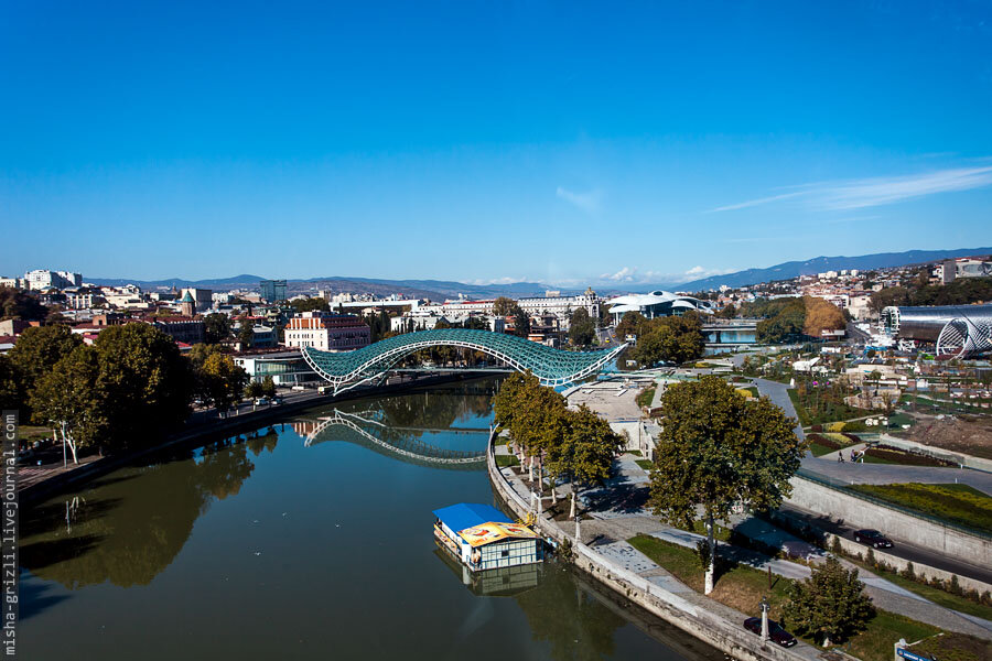 Мост Мира, ТбилисиТбилисиМост Мира объединяет Старый город с Новым городом и является очень известным мостом, с которого открывается прекрасный вид на реку Мтквари (Кура). Здесь вы также можете купить местные сувениры и выпить чашечку кофе в симпатичной кофейне.