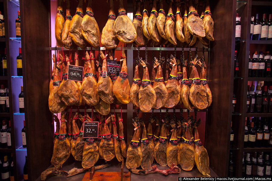 И, наконец, попросите у продавца самый дорогой и ценимый – jamón ibérico de bellota (окорок задней ноги свинки иберийской породы, которая была на свободном выпасе и откармливалась исключительно желудями).