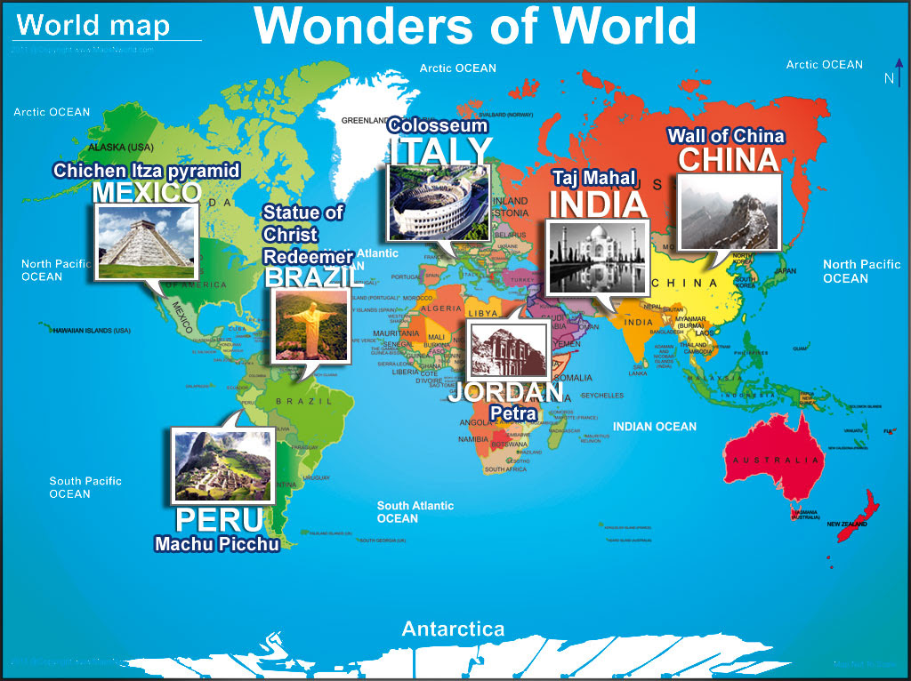 Наконец, были коронованы Новые 7 чудес, и каждый год 7 июля отмечается День 7 чудес. Эти 7 чудес современного мира выделяются как всесторонний выбор, поскольку за них проголосовали обычные люди со всего мира. Вот семь чудес света и где их найти:
