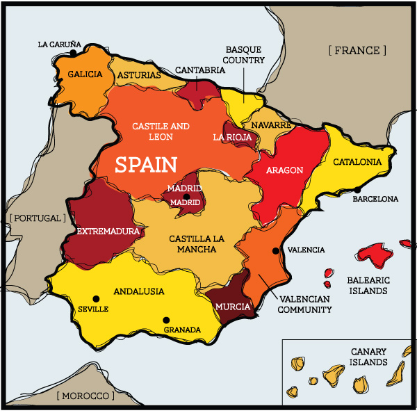 Большая часть ее территории расположена на Пиренейском полуострове, остальные, около 12,500 тыс. квадратных километров, островные – Балеарские острова и Канария – плюс 32 квадратных километра, которые соответствуют городам Сеута и Мелилья, расположенным на побережье Африки.