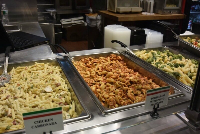 Выглядит все аппетитно, но я предпочитаю брать пиццу, роллы и хачапури в местах, которые специализируются на приготовлении этих блюд. В точке рядом с метро «Автозаводская» выбор небольшой, но все равно разнообразный: есть котлеты, супы, салаты, запеканки, гарниры.
