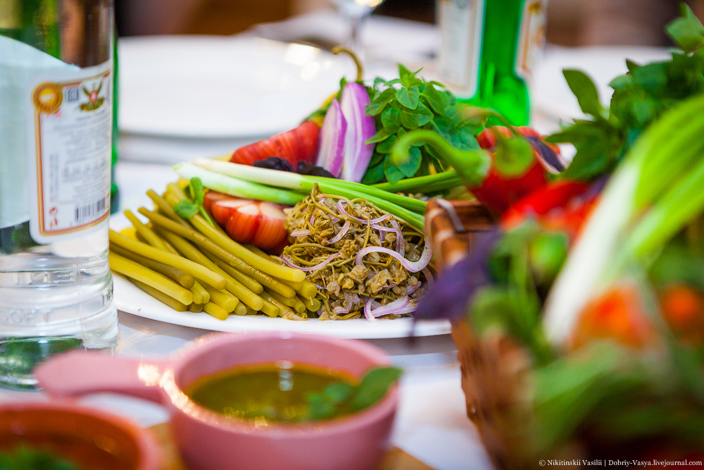Скрытый ресторан, но с великолепным интерьером и романтической атмосферой. У нас был праздник пхали, солений, аджапсандали (грузинский рататуй), внутренностей с орехами (как хорошо!), и ассортимент десертов.