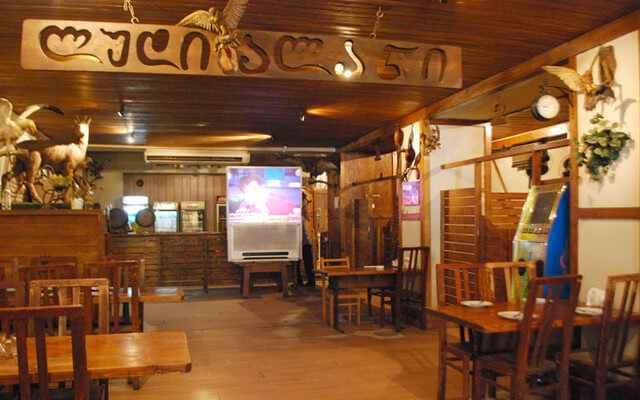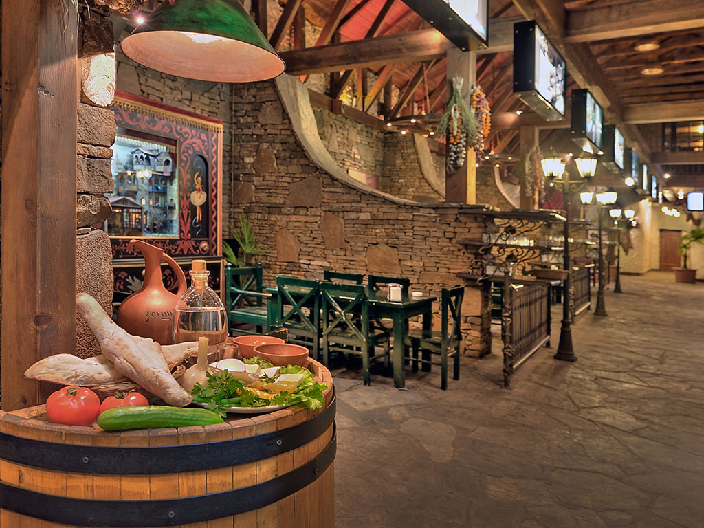 Расположенный за пределами центра города, ресторан также устраивает традиционные танцевальные шоу, чтобы в полной мере познакомиться с грузинской культурой. Выбор меню разнообразен, и помимо местной кухни здесь также подают некоторые европейские и вегетарианские блюда.
