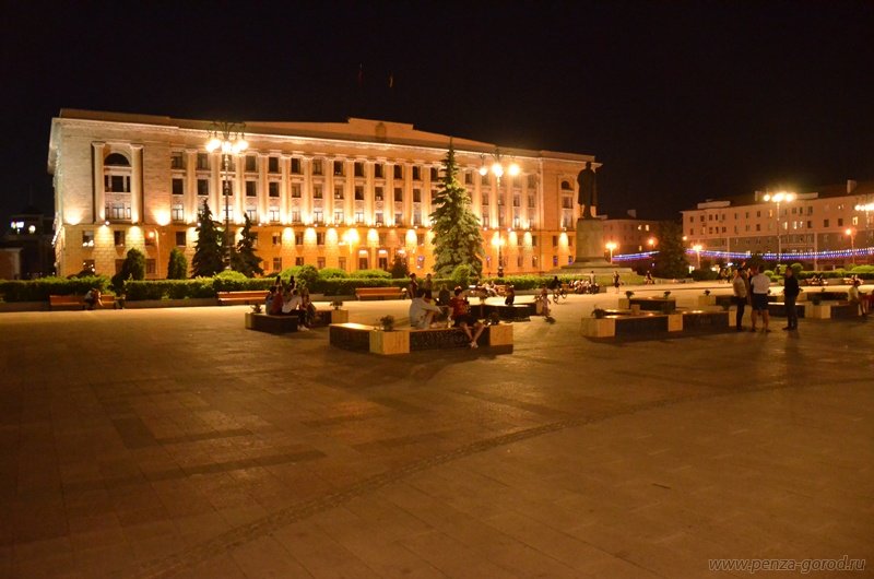 Чуть дальше — официальная площадь Ленина со статуей Ленина и здание Правительства Пензенской области. Примечательно, что на площади проводятся чемпионаты по стритболу.