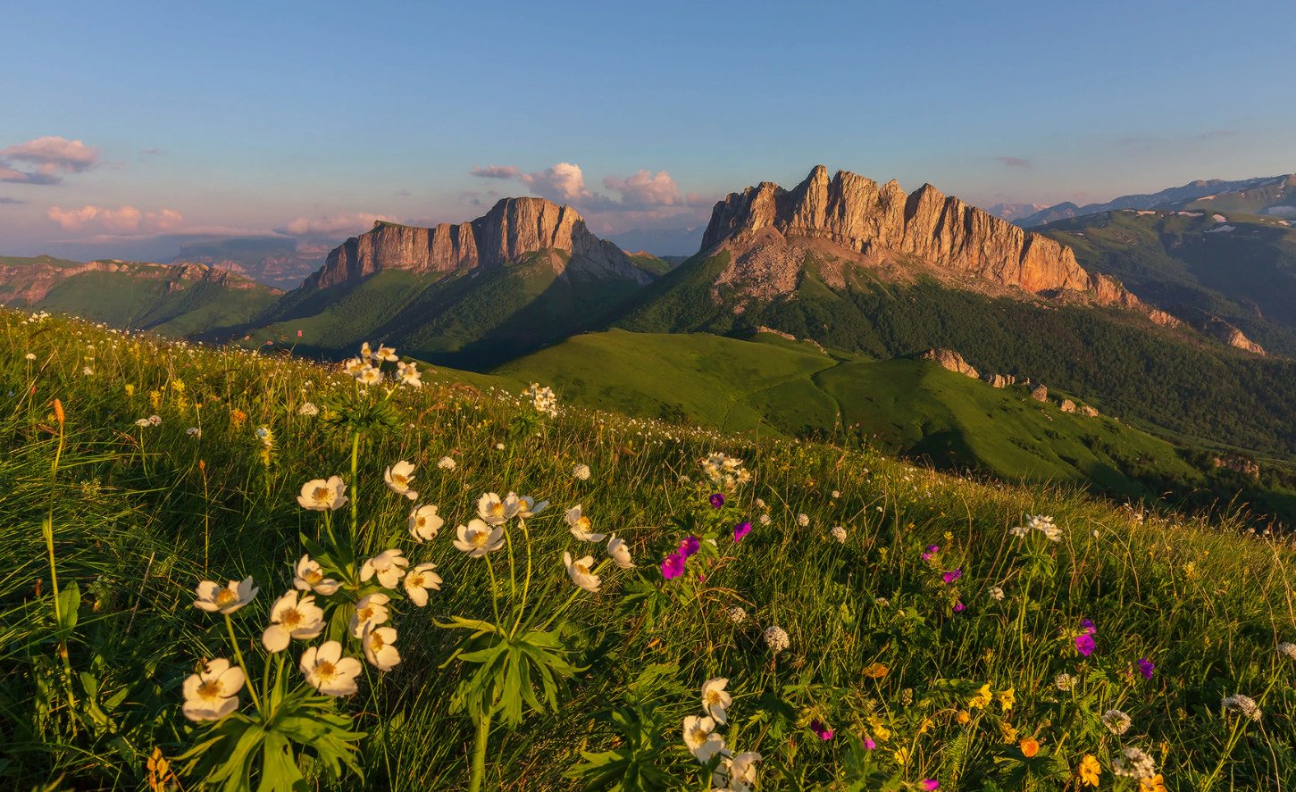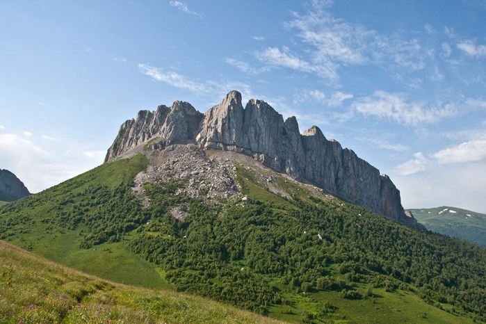 Среди обширных лугов и дремучих лесов Западного Кавказа высятся бастионы горного массива с таинственным названием Ачешбок.