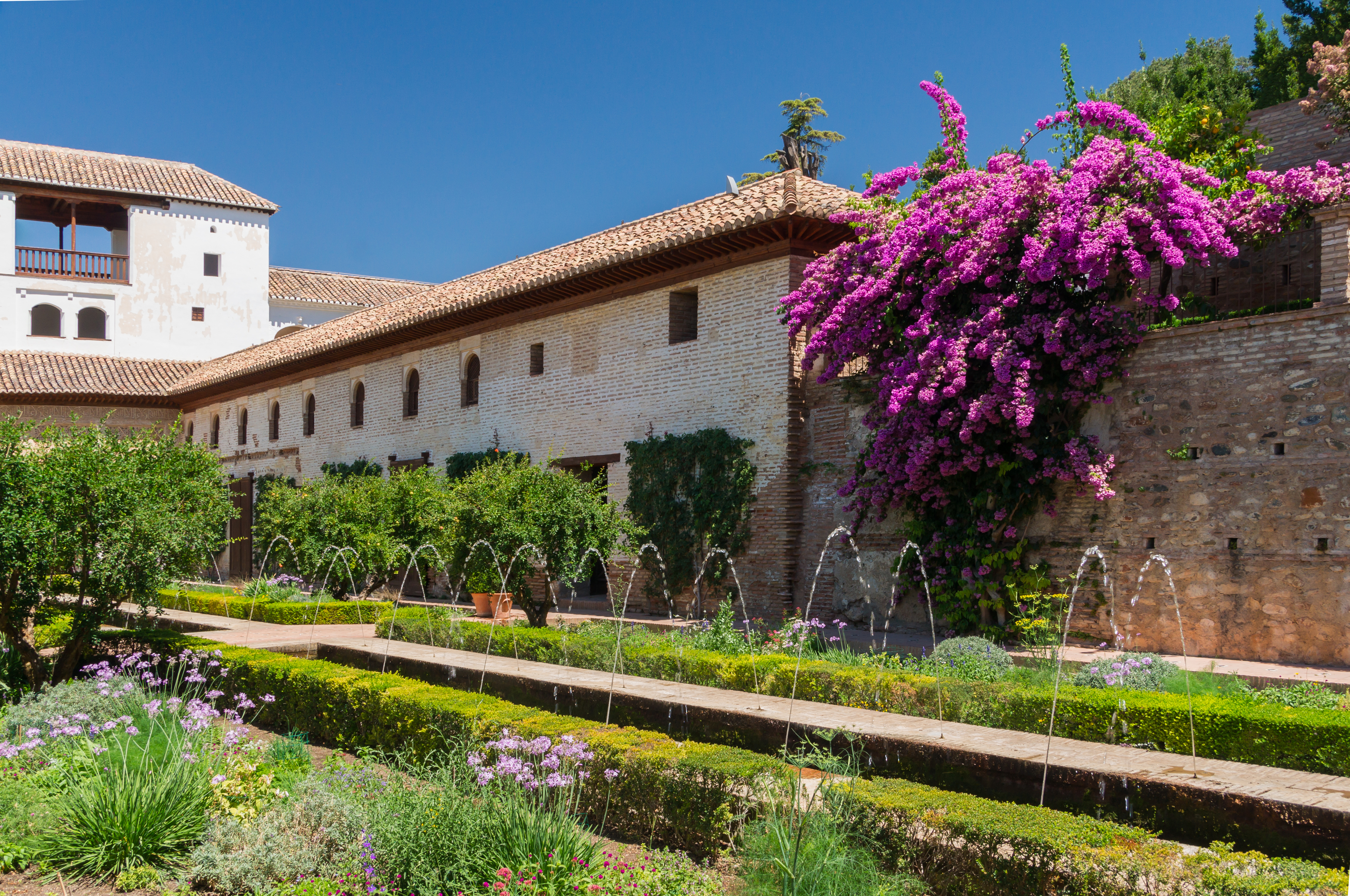 Хенералифе — бывшая загородная резиденция эмиров Гранады. Это самый прекрасный комплекс садов мавританского стиля в Андалусии, расположенный на холме в задней части комплекса с видом на дворец Насридов. Хенералифе наполнены тенистыми патио, фонтанами, ароматами цветов и живописными террасами.