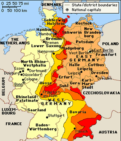 К тому времени Германия уже более десяти лет была фактически разделена на две республики, не признающие существование друг друга. ГДР (Восточная Германия) была образована на территории бывшей советской оккупационной зоны, ФРГ (Западная Германия) — американской, британской и французской. Противостояние между странами социалистического блока во главе с СССР и капиталистическими государствами во главе с США, начавшееся вскоре после окончания Второй мировой войны, с самого начала отразилось на отношениях между Западной и Восточной Германией. Идеологическую конкуренцию сопровождала экономическая. Важнейшая часть границы между государствами пролегала прямо по улицам Берлина. Немецкая столица, разделенная между ФРГ и ГДР, полностью находилась на территории восточногерманской республики, то есть Западный Берлин был анклавом.