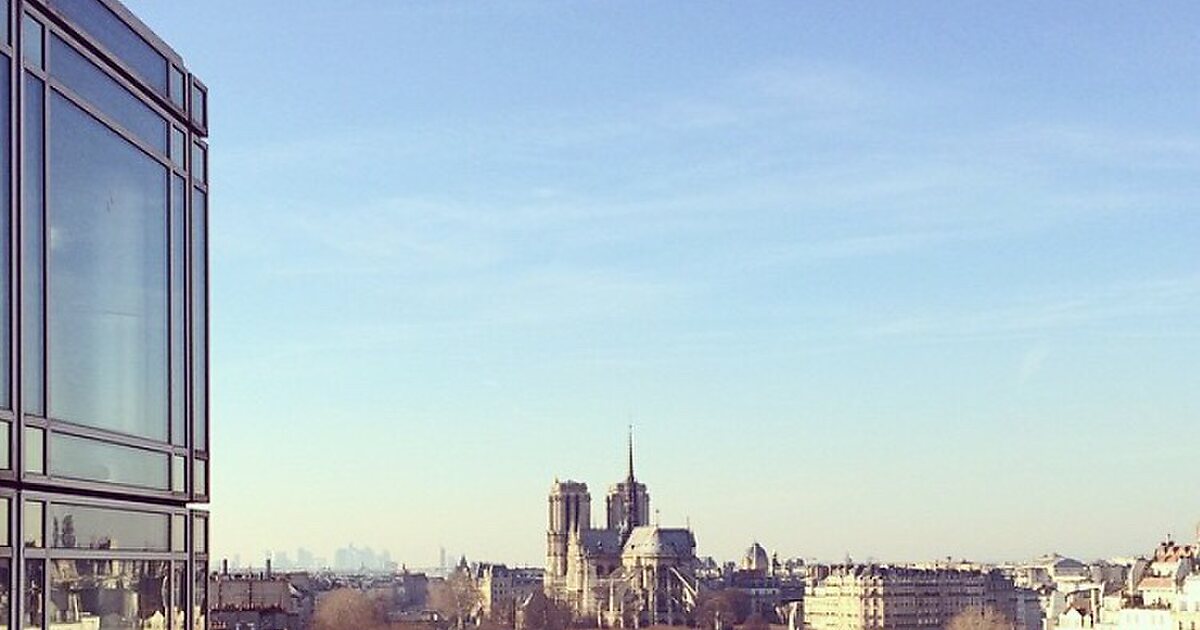 Сверху, с расположенной на 10-м этаже террасы, открывается великолепный вид на Сену в сторону апсиды собора Нотр-Дам де Пари.