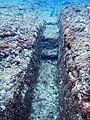 Следующий аргумент: блоки, отделенные от скалы, вовсе не лежат там, куда им следовало бы упасть под действием земного притяжения. Вместо этого они либо собраны в одном месте, либо вообще отсутствуют. Если бы объект был создан эрозией, то на дне рядом с ним было бы много обломков, как на современных берегах острова. А здесь этого нет….
