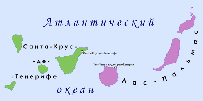 - Столица: Лас-Пальмас-де-Гран-Канария и Санта-Крус-де-Тенерифе