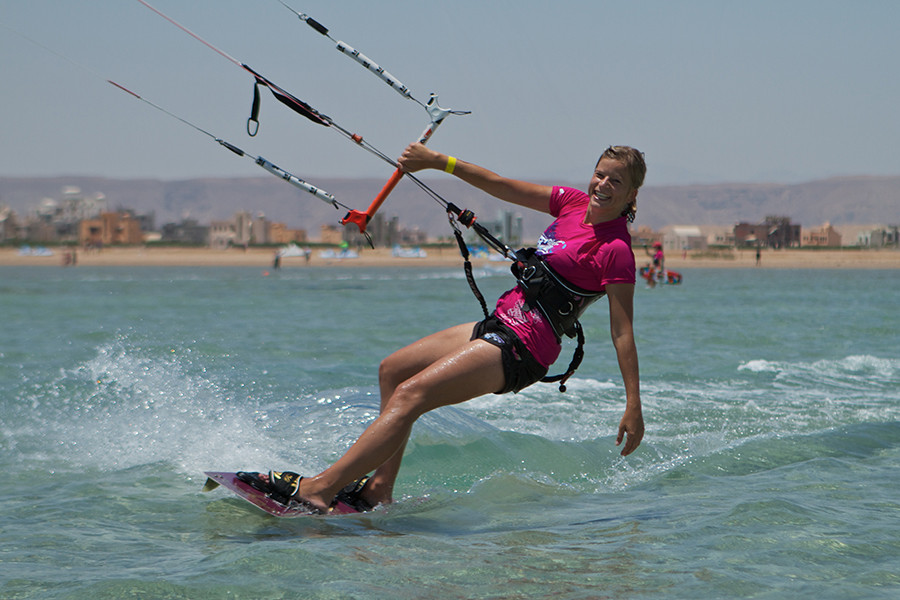 Сезон кайтинга с июня по август, ветер дует под небольшим углом в берег, что особенно удобно для учащихся.