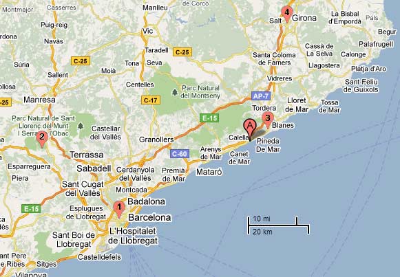 - На автомобиле: двигаясь на юг из Франции, сверните на AP-7 до съезда 9 (Льорет-де-Мар), затем пройдите последние 14 км по дороге C-63.