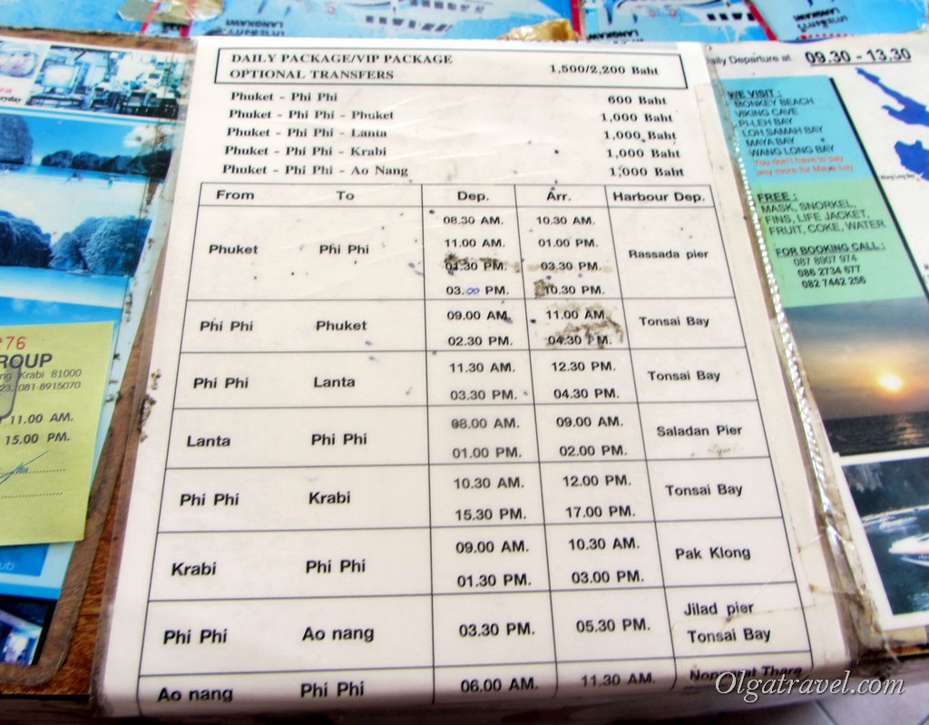 Цены на билеты указаны в тайских батах на человека, включая: Встреча в отеле в городе Краби, билет стандартного класса на скоростной катамаран и паром.