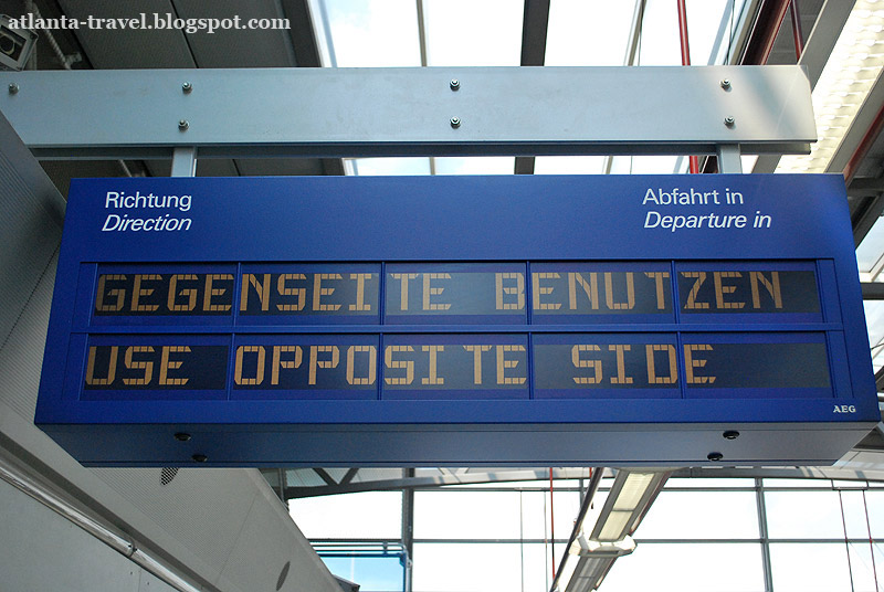 На электричкеС аэропортом соединены две станции вокзала. Flughafen Regionalbahnhof (пригородный) находится в терминале 1, этаж 0, зал В, отсюда в центр города круглосуточно отправляются поезда линий S9 и S8. Чтобы доехать до центра Вам нужны поезда, которые отправляются в сторону Hanau или Offenbach Ost (это важно знать, так как поезда прибывают на одни и те же платформы и отличить их можно только по направлению).