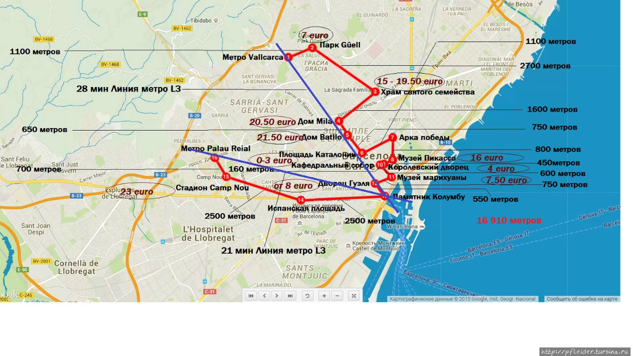 - Маршрут: до Пл.Каталонии (остановки на Pl.Espanya, Sepúlveda-Urgell)