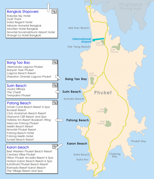 А далее несколько обычных карт, на которых подписаны только самые популярные пляжи Пхукета. Все карты кликабельные и их можно увидеть в большом размере, а также скачать себе на компьютер.