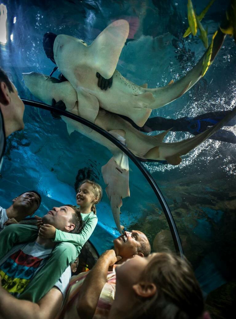 Гордостью Океанариума являются небольшие акулы — за ними можно просто наблюдать или посмотреть шоу с их участием. Всем ребятам понравится такая экскурсия, ведь здесь они познакомятся с морскими обитателями.