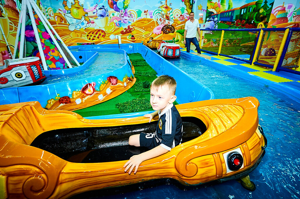 Более 20 игровых территорий для детей разных возрастов: веревочные комплексы, лабиринты, сухой бассейн, бампер-кар, тренажеры виртуальной реальности, аэрохоккей, а также фудкорт, комнаты для дня рождения и просторная event-зона, где можно проводить праздники.